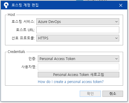 SourceTree에서 원격 저장소 계정으로 DevOps 계정을 추가하기 위해서는