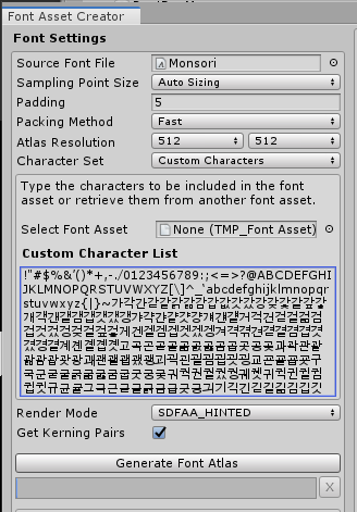 Custom Character List에는 한글 2350자 + 특수문자 / 영문을 복붙해서 넣어준다.