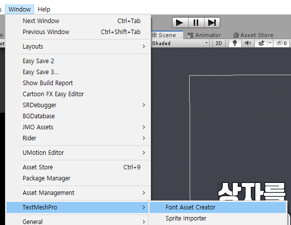 Window - TextMeshPro - Font Asset Creater를 실행.