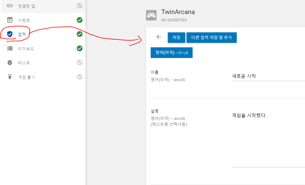 여기서 ID값을 참조해서 업적이나 리더보드등을 불러오면 된다.