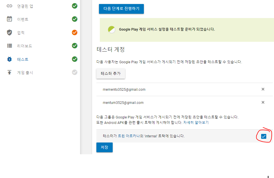 1. 추가로 게임 서비스 - 테스트 에서 테스트 그룹을 체크