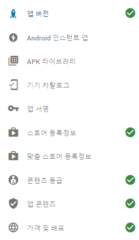내부 앱 테스트라도 앱을 출시하기 위해서는 모든 항목들이 초록색 체크표시가 되도록 입력해줘야한다.