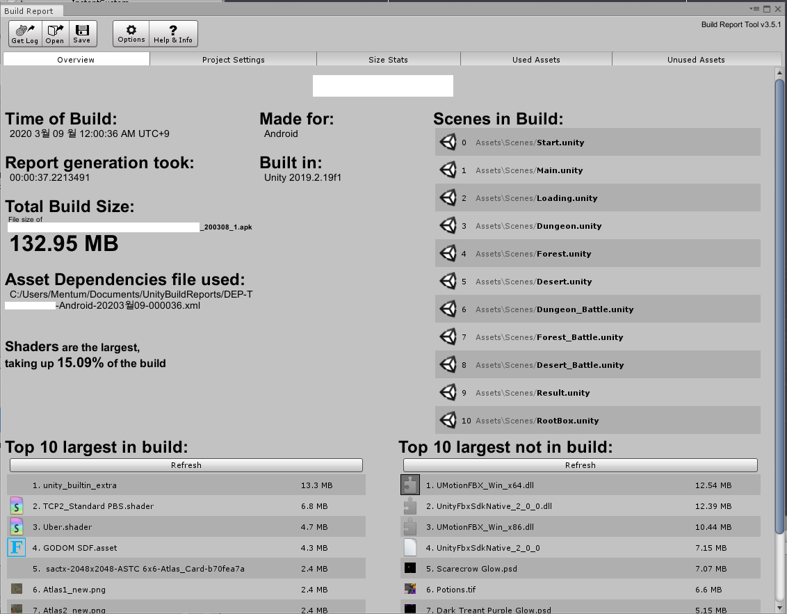 빌드 후 각종 정보들을 정리해서 보여줌, 특히 사용된 에셋 레퍼런스를 제공함.