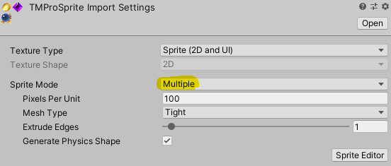 주의점2) TMP 세팅에서 Default로 설정된 경우에 sprite 이름을 입력하지 않아도 된다.