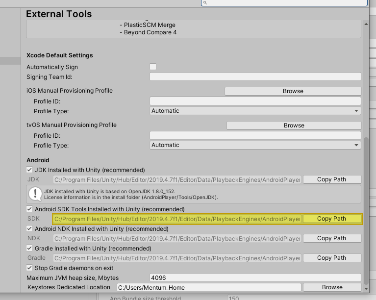 안드로이드 스튜디오의 Platform 툴 폴더에서 필요한 SDK 버전을 복사해서 유니티의 경로에 붙여넣자!