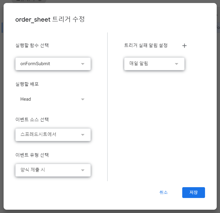 - 트리거 만들기를 하고, 아래와 같이 설정.