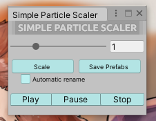 Window - Simple Particle Scaler 를 선택하면 팝업이 뜬다.