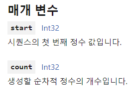 https://docs.microsoft.com/ko-kr/dotnet/api/system.linq.enumerable.range?view=net-5.0
