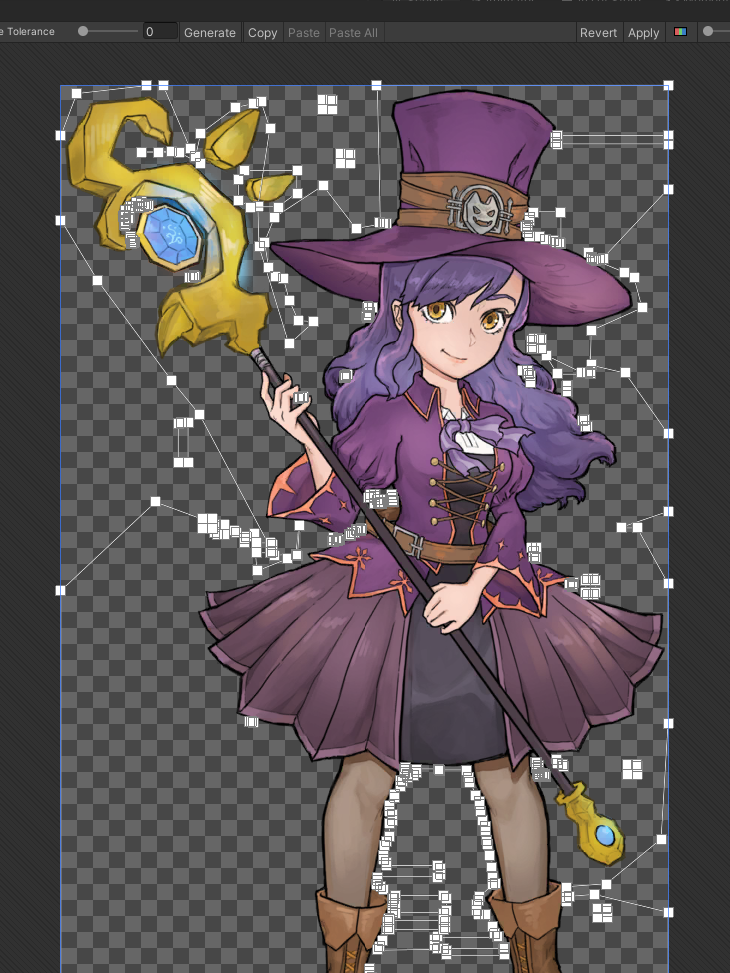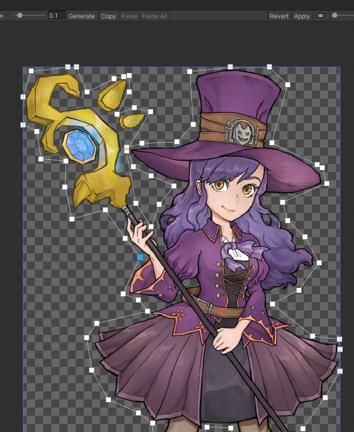 실제 이미지는 투명한 부분이 상당히 많이 차지하지만 유니티 내에서는 투명한 부분도 캐릭터가 그려져있는 픽셀과 아무런 차이없이 그리고 있는 것을 확인할 수 있다.
