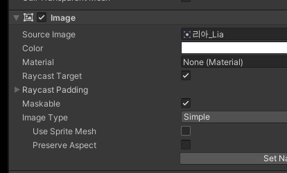 그런 뒤, Image 컴포넌트의 Use Sprite Mesh를 체크해주자.