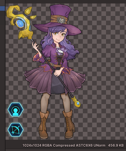 이유는 스프라이트 Tight Packing을 할때 아래와 같이 캐릭터의 스프라이트영역에 아이콘스프라이트가 존재하기 때문에, 캐릭터를 그릴때 같이 그려지게 된 것.
