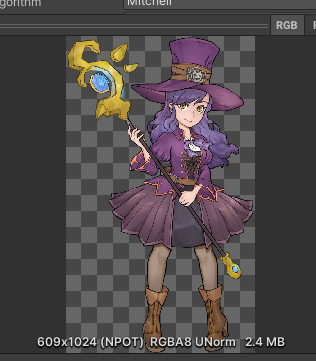 왼쪽은 609x1024로 NPOT 라서, 압축을 하지 못해 무손실 형식으로 2.4 MB가 되었고