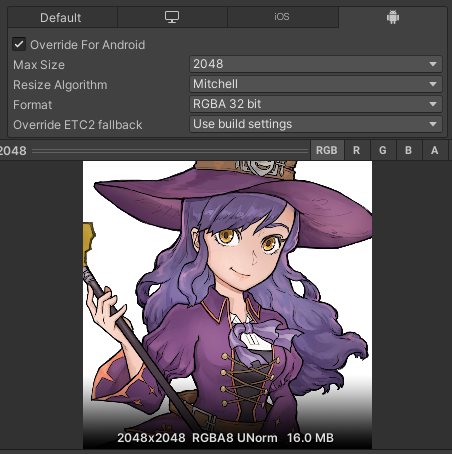 | PVRTC | 유니티의 기본 iOS 압축형식 | 2 MB | iOS |