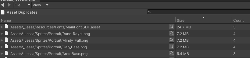 BuildLayout Explorer for Unity 2019.3 and newer allows you to inspect the buildlayout.txt report that is generated by Addressables. - GitHub - pschraut/UnityAddressablesBuildLayoutExplorer: BuildLa...