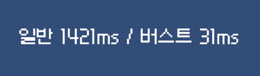 text.text = $"일반 {normalWatch.ElapsedMilliseconds}ms / 버스트 {burstWatch.ElapsedMilliseconds}ms";