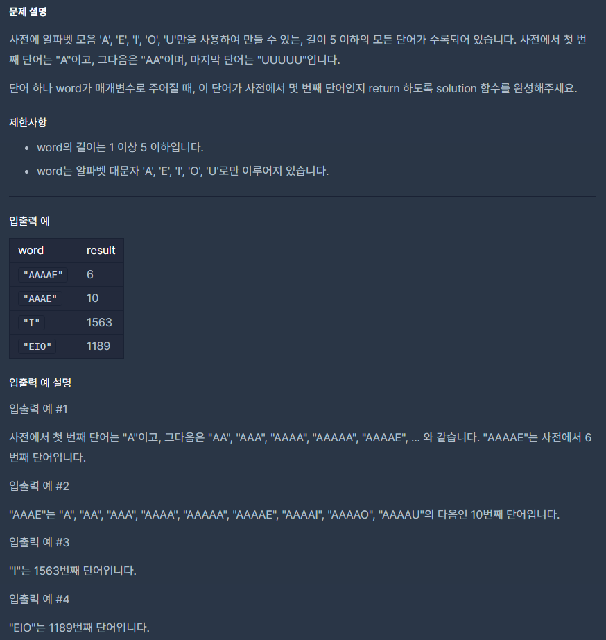 1. A, E, I, O, U로 만들 수 있는 모든 문자열
