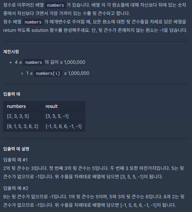 '뒤에 있는 숫자' 라는 말이 나오자마 스택문제구나 싶었다.