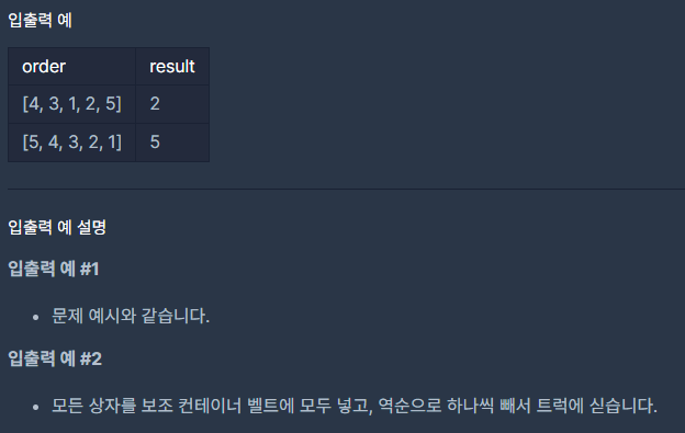 대부분의 코테 문제에서는 박스번호의 배열을 주는데 이 문제는 순서의 배열을 줬다.