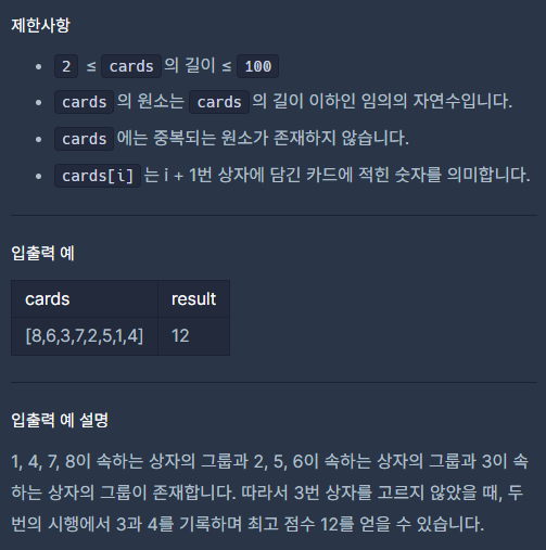 for(int a = 0; a < cards.Length; ++a) // 첫 상자를 완전탐색