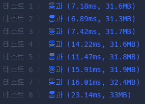 완전 탐색으로 풀었을 때와 달리 5번과 6번 케이스의 시간이 극적으로 줄었다.