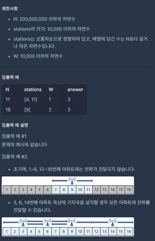 station 컬렉션을 순회하면서 좌측 전파범위 직전까지(전파가 안닿는 위치까지의) 아파트 갯수를 세고,