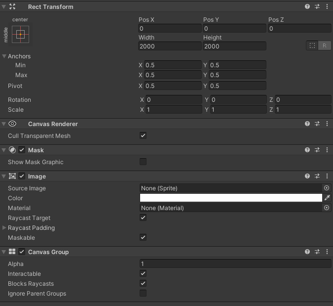 - 이미지 전체를 덮을 수 있는 크기만큼의 빈 Image를 준비하고 Mask를 붙여준다. (Show Mask Graphic 체크해제)
