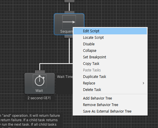 각 노드를 우클릭해보면 스크립트를 직접 수정하거나 스크립트의 위치를 Ping 찍어서