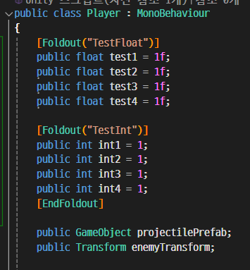 - 변수 위에 Foldout 그룹을 선언하고, 끝에서 EndFoldout으로