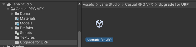 패키지를 임포트 한 후, URP를 사용하고 있다면 별도로 Upgrade for URP 폴더의 패키지도 실행해서 임포트 해야 한다.