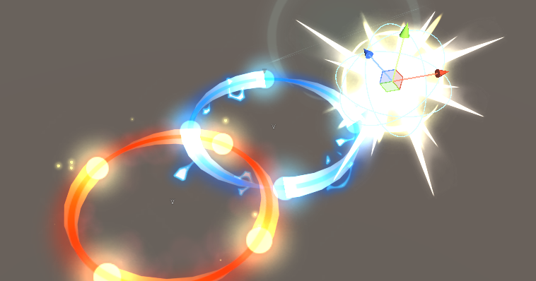 파티클을 씬에 배치해 보면 별도로 포스트 이펙트의 블룸 효과를 주지 않아도 빛나는 것처럼 처리가 되어있는데,