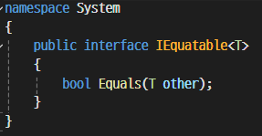 System 네임 스페이스에서 제공되는 IEquatable<T> 인터페이스를 구현해 보자.