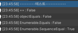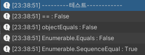 때문에 record 타입이나 struct 타입으로 실행해 보면 다음과 같이 Enumerable.SequenceEqual이 true를 반환하게 된다.