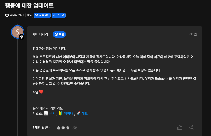 아직 공식적으로 중단 여부나 기존 소스의 GitHub 공개 여부에 대한 확실한 발표는 없지만,