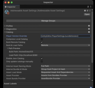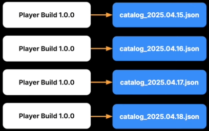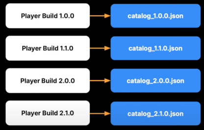 - 플레이어 빌드에는 리모트 카탈로그의 URL이 포함되어 이를 다운로드하고, 이 카탈로그를 보고 번들을 받아서 캐싱한다.