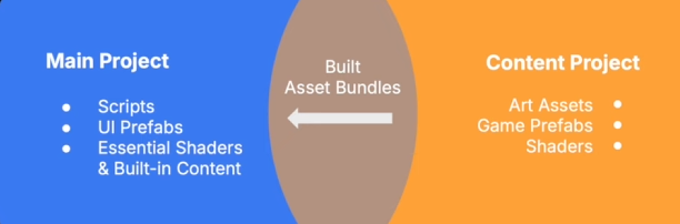 - 즉, 같은 시점에 사용되는 에셋만 같은 번들로 묶는다.